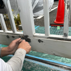 長持ちさせるために、まず「死膜」(機能を失い浮いた古い塗膜)やケレン作業で徹底的に除去しました。この下地処理こそが、塗装の品質を左右する最も重要な工程です。