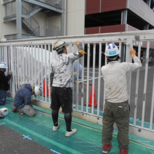 • 住民の安全と生活への配慮: 門扉の塗装工事は出入り口付近での作業になるため、**工事期間(5日間)**中の安全対策と、門扉の開閉ができない時間帯について、事前にマンション管理組合様と調整し、住民の方の生活動線に最大限配慮して作業を行いました。