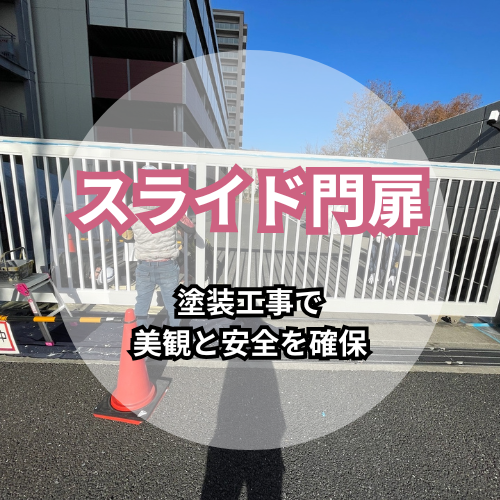 今回の工事は、マンションの駐車場スライド門扉に対する改修塗装工事(設備塗装)です。