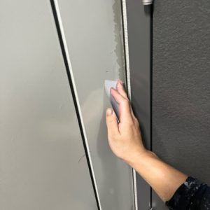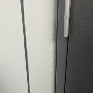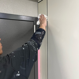 今回の現場は、改修工事後のマンションにおいて、複数の住戸の玄関扉枠(スチール製)に塗膜のめくれが確認されたケースです。対象戸数が多いため、効率的かつ確実に不具合を解消する必要がありました。