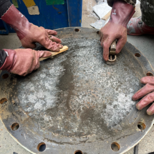 - 過酷な環境下での徹底した下地処理| 内部はヘドロや重度の錆が混在する非常に厳しい状態でした。通常の清掃では取り切れない固着した汚れや錆に対し、専門職人が徹底的なケレン(研磨・除去)を実施。塗料の性能を最大限に引き出すための「塗る前の準備」に最も注力しました。
