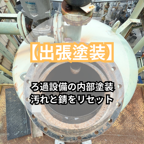 今回の施工事例は、長期間メンテナンスが行われていなかった工場内の「ろ過設備」に対する内部塗装工事です。