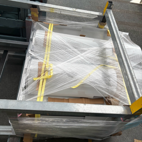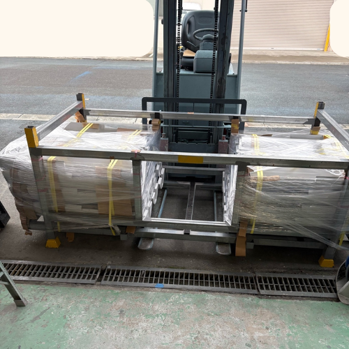 物流・搬送時の塗膜保護対策の徹底|現場での上塗りに影響が出ないよう、完成したプライマー塗膜に傷がつかないよう、搬送・保管時には専用の塗膜保護シートを使用し、丁寧に梱包することで品質を維持しました。