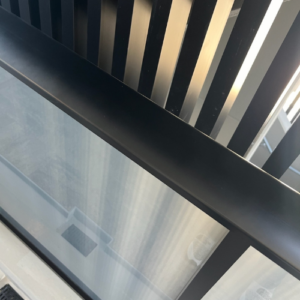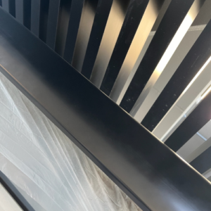 そして仕上げに、本工事で最も重要となる「ツヤ消しクリヤー」をコーティングしました。これにより、塗料の不自然な光沢を抑え、アルマイト本来のマットで落ち着いた質感と均一化させることが可能です。