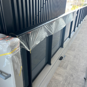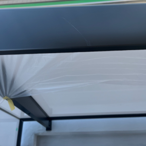 そこで弊社では、アルマイト材への密着性を高める専用の下塗り材を使用し、周囲の色に限りなく近づける調色技術と、質感を整えるツヤ消しクリヤー仕上げを行い、自然に仕上げた施工の詳細をご紹介します。