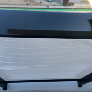 この素材は表面が硬く塗料が密着しにくいうえ、金属特有の半透明な質感を持っているため、一般的なペンキで上から塗ると、そこだけ色が浮いてしまい「補修した跡」がくっきりと残ってしまいます。ご相談いただいた時点では、簡易的な補修による色ムラや艶の違いが目立ち、美観を損ねている状態でした。